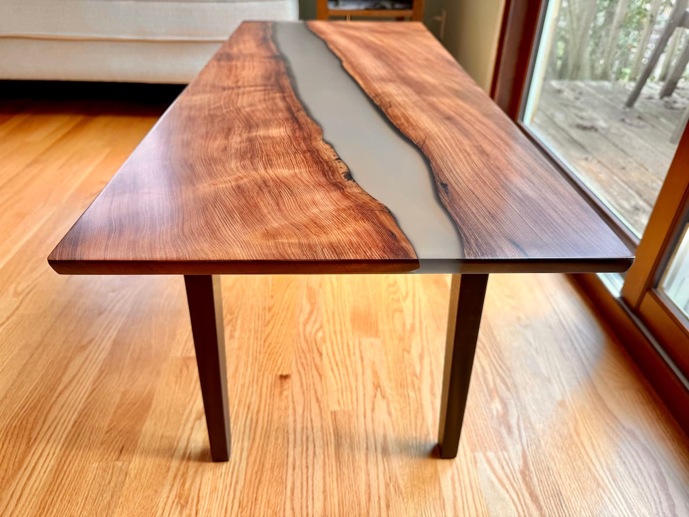 Very few woods exhibit beauty comparable to redwood. Paired with a semi-transparent deep-pour epoxy, this river style coffee table is a functional art piece that you won't find in any store.